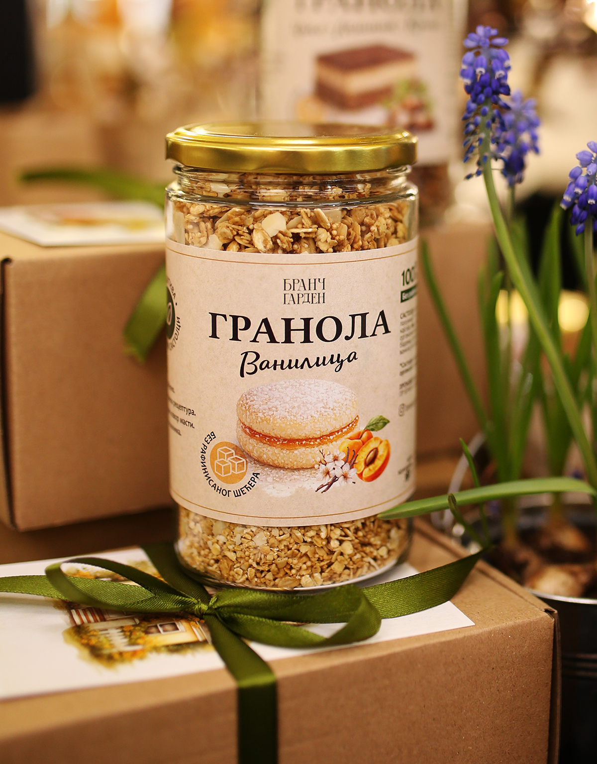 Branč Garden je porodična, zanatska radionica poslastica i voćnih kremova od premijum prirodnih sastojaka. Naši proizvodi su čistog sastava – bez veštačkih aditiva i rafinisanih šećera, jedinstvene recepture, rađeni ručno u malim serijama. Trudimo se da posvetimo pažnju svakom detalju – od kvaliteta sastojaka, odabira lokalnh sirovina, pa do dekorativnog, a ujedno i ekološki prihvatljivog pakovanja. Svaki naš proizvod nosi priču o prirodi, zajednici i održivosti koja predstavlaja srž koncepta našeg brenda.